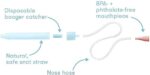 - COMFORTABLE + NON-INVASIVE: NoseFrida creates a seal with the outside of the baby’s nostril for gentle snotsucking.